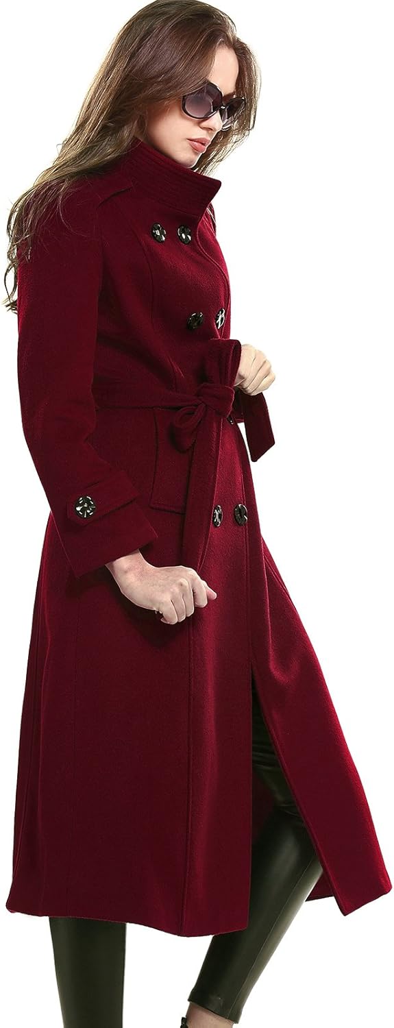 50% Wool,50% Polyester Imported Polyester lining Button closure Dry Clean Only Good quality wool blend fabric,and making style make you feel good and comfortable Double breasted button up fastening, Storm flap, Fully lined wool trench coat Classical Double-Breasted coat with Belted waist, Buttoned cuffs,Unique collar design,side-entry front pockets Care instructions:Dry cleaning;Suitable for occasions:business,party,holiday,casual wear. This wool trench coat is classic and timeless style,it is a cold-weather essential,Wear the neck open for a classic look